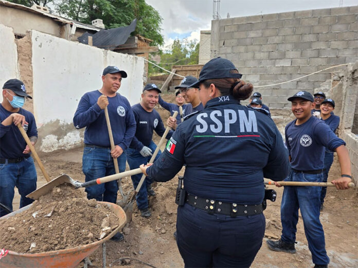 Un grupo de 50 futuros policías son los que llegaron hasta la colonia Francisco Sarabia para ayudar a cuatro familias que perdieron la totalidad de sus muebles y pertenencias.