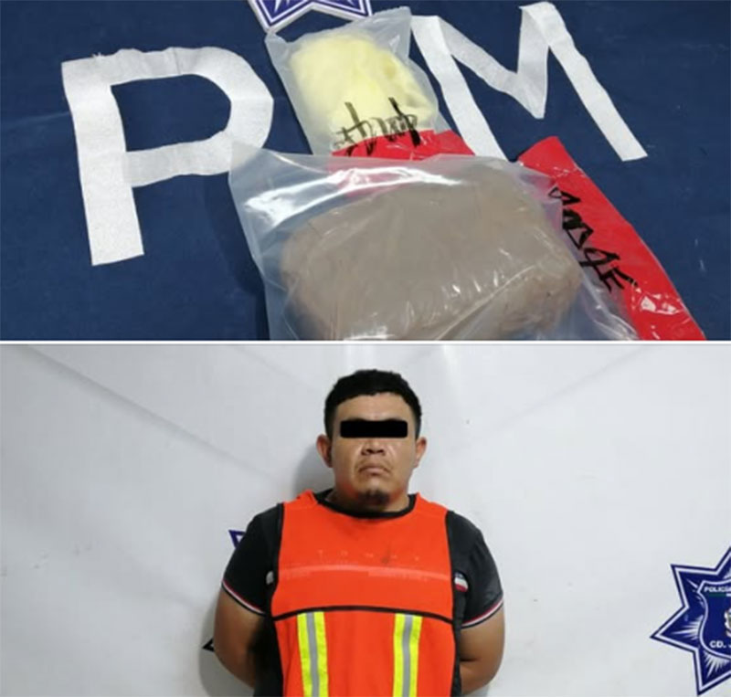 Agentes de la Secretaría de Seguridad Pública Municipal arrestaron a Edgar Jonathan A. A., por su presunta responsabilidad en la comisión de delitos contra la salud.