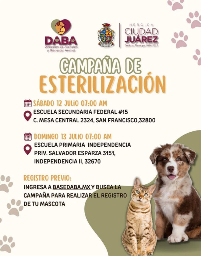 Este fin de semana la Dirección de Atención y Bienestar Animal (DABA) llevará a cabo esterilizaciones de manera gratuita, por lo que invita a la comunidad para que aproveche esta campaña en beneficio de sus mascotas, tanto perros como gatos.