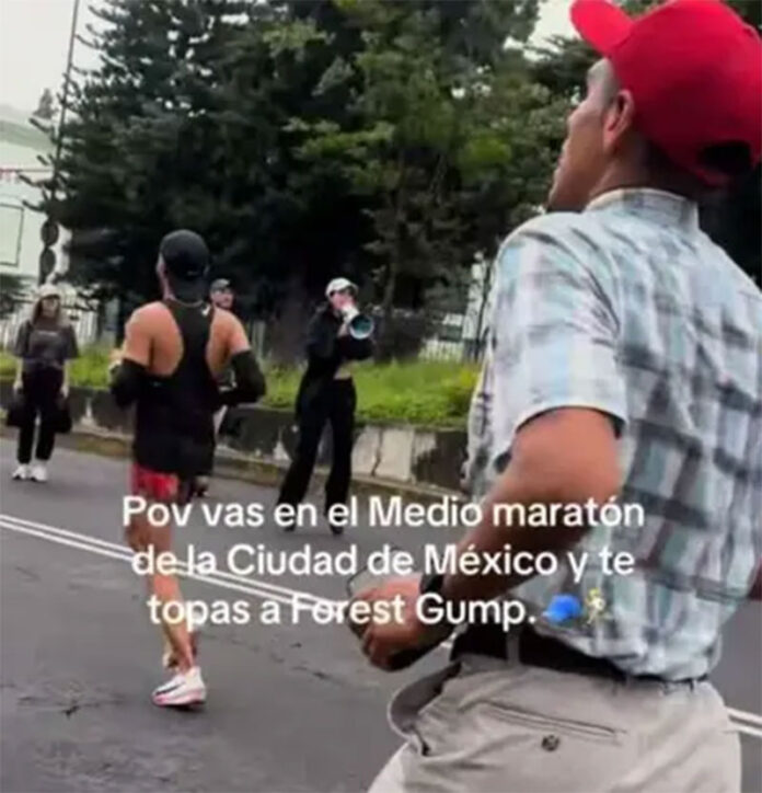 “POV: Vas al Medio Maratón de la Ciudad de México y te topas a Forrest Gump”, se lee en el video compartido en TikTok.