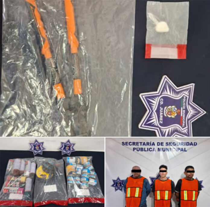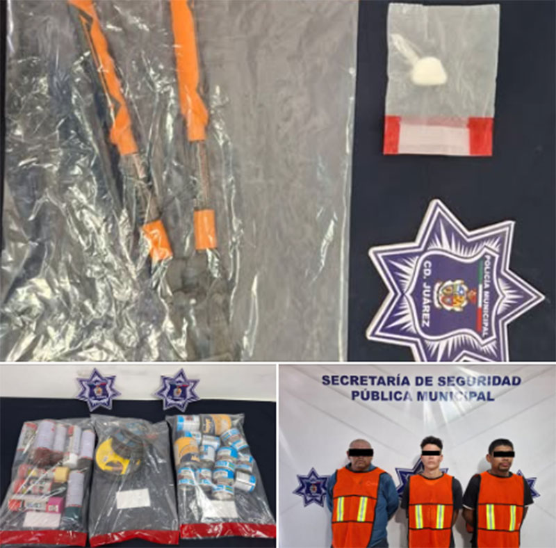 Elementos de la Secretaría de Seguridad Pública Municipal arrestaron a Gustavo Aarón T. O, Lorenzo R. C., y a Jasiel V. S., por su presunta responsabilidad en la comisión de delitos contra la salud y por su presunta participación en el delito de robo.