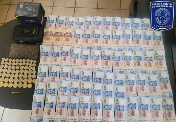 Durante los trabajos de investigación se obtuvieron indicios que condujeron a los agentes ministeriales hasta un punto de la entrada a la ciudad de Parral, en donde un particular entregó de manera voluntaria del dinero y los citados artículos.