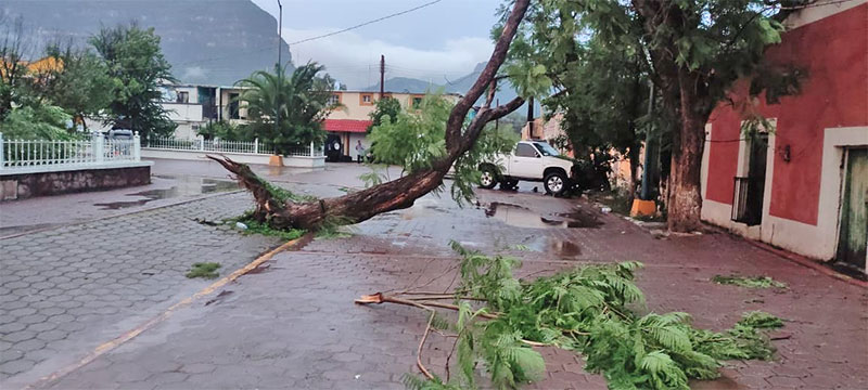 Durante la noche del domingo 27 de julio, en Moris se registraron precipitaciones intensas con acumulados de 75 mm en menos de una hora, que provocaron el derrumbe de bardas y caída de árboles; en Urique, vientos fuertes causaron la caída de un techo en Guagüeyvo.