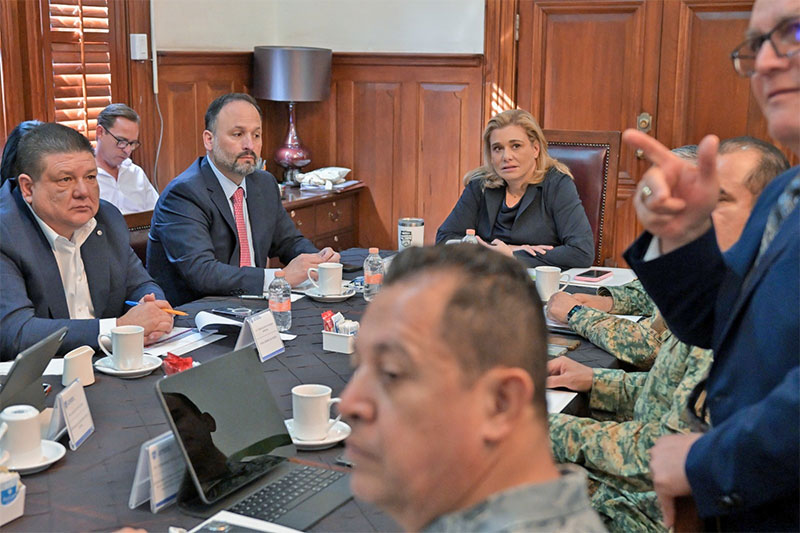 La gobernadora Maru Campos encabezó este lunes en Palacio de Gobierno la reunión semanal de la Mesa de Coordinación de Construcción de Paz, donde refrendó el trabajo de colaboración con las autoridades federales, para garantizar la tranquilidad de los chihuahuenses.