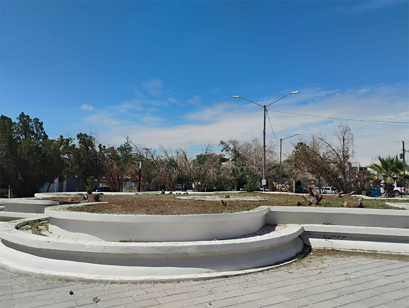 Daniel Zamarrón Saldaña, titular de Parques y Jardines, indicó que también fueron retirados dos árboles secos que representaban peligro para quienes usan el espacio y para los transeúntes.