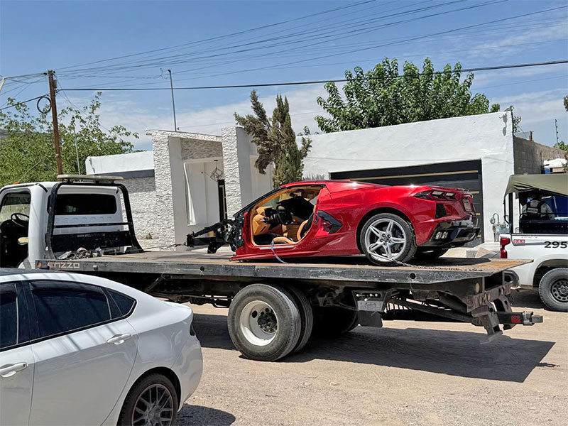 En el lugar fue hallado un automóvil semidesmantelado de marca Chevrolet, línea Corvette, de color rojo, y en la revisión a cargo de Peritos de la Dirección de Servicios Periciales, analizaron las pruebas recabadas y confirmaron que tiene reporte de robo interpuesto el pasado martes 29 de julio en Arizona.