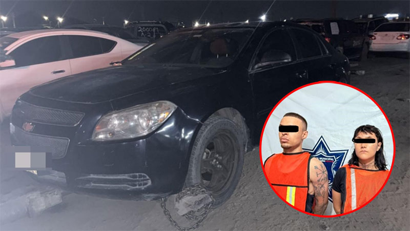 Elementos de la Secretaría de Seguridad Pública Municipal arrestaron a Bryan E. C. y a Verónica V. P., por su presunta responsabilidad en la comisión del delito de posesión de vehículo con reporte de robo y delitos contra la salud.