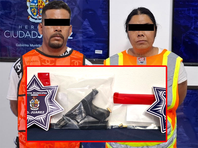 Agentes de la Secretaría de Seguridad Pública Municipal arrestaron a Carlos Jesús O. H. y a Sasy Viridiana R. N., por su presunta responsabilidad en la comisión del delito contra la ley federal de armas de fuego y explosivos y delitos contra la salud.