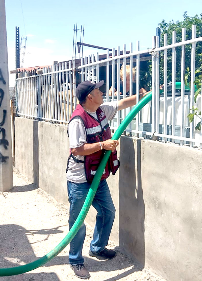“Hemos estado recorriendo, por instrucción del Presidente Cruz Pérez Cuéllar, las colonias en donde aún no están conectadas a la red de distribución de agua, además de aquellas zonas en donde llega a existir alguna falla en el suministro”, explicó.