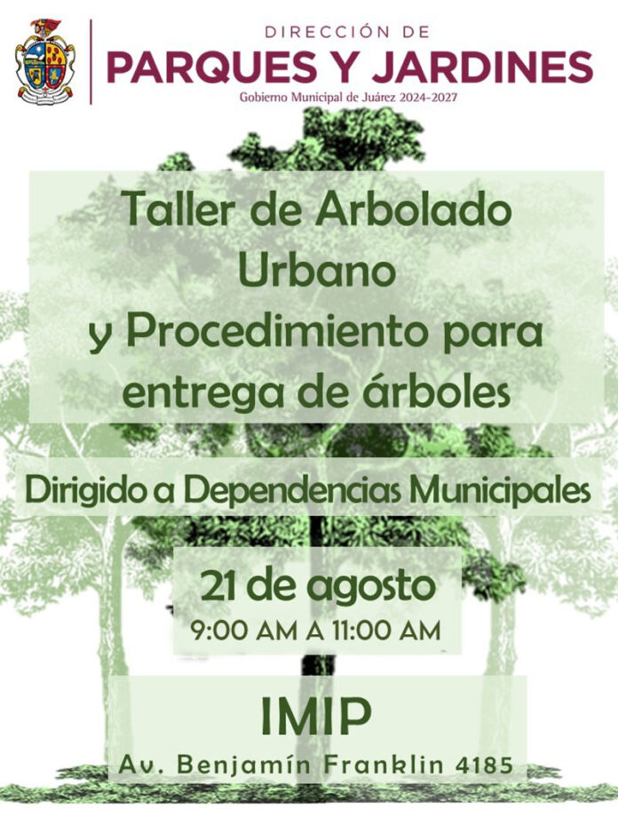 Con el propósito de fortalecer el conocimiento en materia de plantación y cuidado de áreas verdes, la Dirección de Parques y Jardines impartirá un taller de arbolado urbano y procedimiento para entrega de árboles, dirigido a personal de las distintas dependencias municipales.