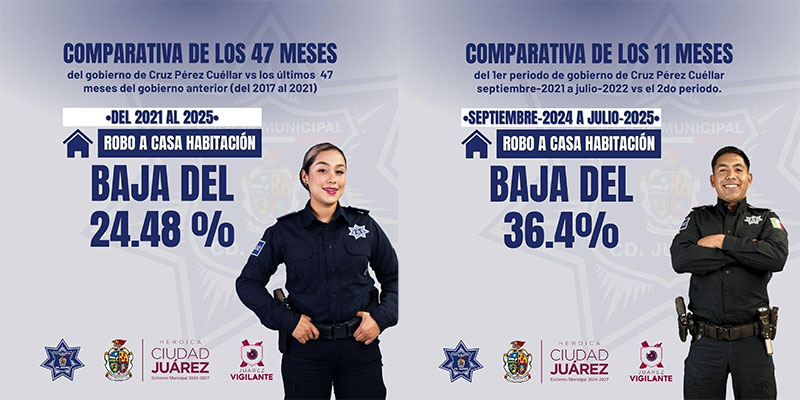 En los 47 meses que ha estado al frente del municipio Cruz Pérez Cuéllar en comparación con 47 meses de la administración anterior, se registró una notoria diferencia a la baja, con una reducción del 24.48% en casos de robo habitación