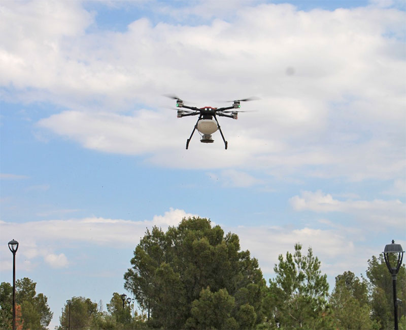 Por ello, el día de hoy en el Parque El Reliz de la ciudad de Chihuahua se realizó una demostración del sistema que con el que dispersan semillas a través de un dron equipado con tecnología geoespacial, capaz de identificar áreas óptimas para la reforestación.