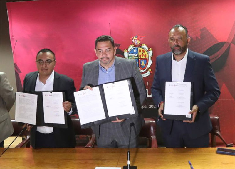 “Estamos a la orden y vamos a sacarle provecho a este convenio hecho a favor de las y los emprendedores juarenses”, dijo el Presidente Municipal, Cruz Pérez Cuéllar, quien encabezó la firma del acuerdo, acompañado del secretario del Ayuntamiento, Héctor Rafael Ortiz Orpinel y otros funcionarios municipales.