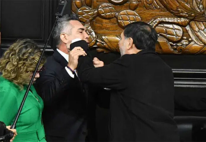 Gerardo Fernández Noroña, presidente de la Mesa Directiva del Senado, y el dirigente del PRI, Alejandro ‘Alito’ Moreno, se enfrentaron a manotazos y empujones en la última sesión de la Comisión Permanente del Congreso de la Unión.