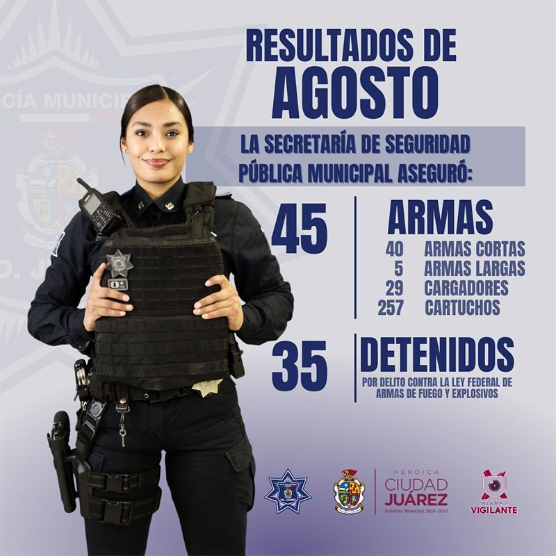 La Secretaría de Seguridad Pública Municipal reitera su compromiso de continuar trabajando en combatir los delitos de alto impacto, poniendo de manifiesto la importancia de mantener segura a la ciudadanía juarense.