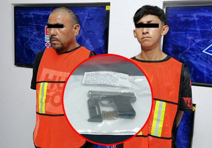 Elementos de la Secretaría de Seguridad Pública Municipal arrestaron a Emmanuel B. B. y Juan Gerardo H. F., por su presunta responsabilidad en la comisión de los delitos de posesión de vehículo con reporte de robo y delitos contra la ley federal de armas de fuego y explosivos.