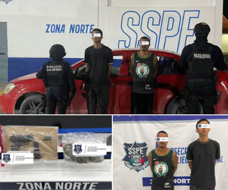 Los sospechosos fueron Santiago “N” de 19 años, quien tiene cinco detenciones previas ante la Fiscalía General del Estado, y de José Juan “N” de 35 años, con ocho detenciones previas en sus antecedentes.