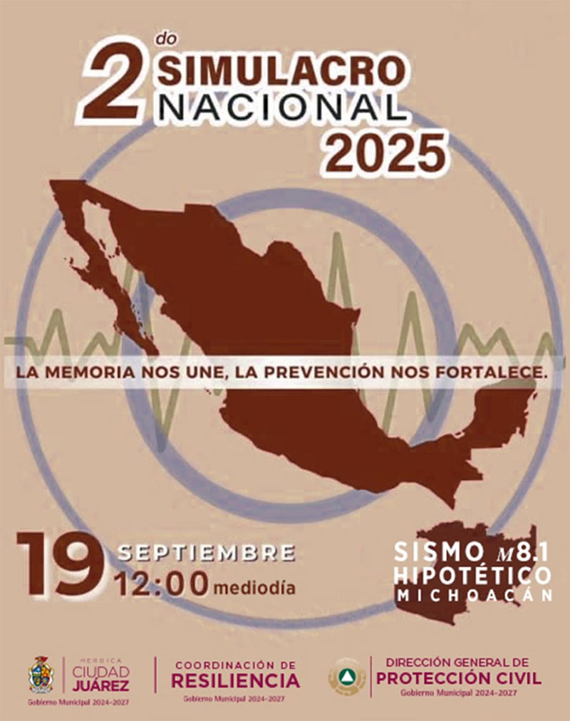 El titular de la Dirección General de Protección Civil de Ciudad Juárez, Sergio Rodríguez, extendió una invitación a toda la población para participar en el Segundo Simulacro Nacional 2025, ejercicio que busca fortalecer la cultura de la prevención y reforzar la preparación de la comunidad ante situaciones de emergencia.