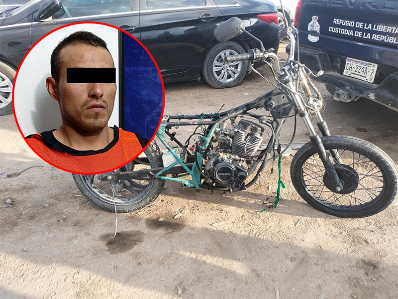 Agentes municipales que realizaban labores de prevención y vigilancia en el cruce las calles Privada Rincón de Extremadura y Rincón de Extremadura, en la colonia Rinconada de las Torres, se percataron que un sujeto se encontraba desmantelando dos motocicletas en la vía pública.