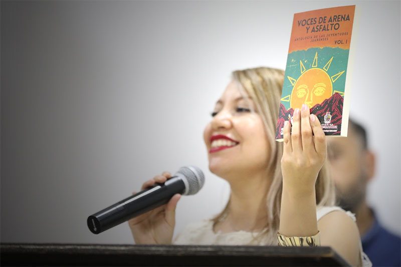 Esta mañana se llevó a cabo la presentación del libro Voces de Arena y Asfalto: Antología de las Juventudes Juarenses, un proyecto literario que reunió a 22 jóvenes escritores de la ciudad, quienes durante meses trabajaron en talleres de escritura creativa para dar forma a sus historias ambientadas en la frontera.