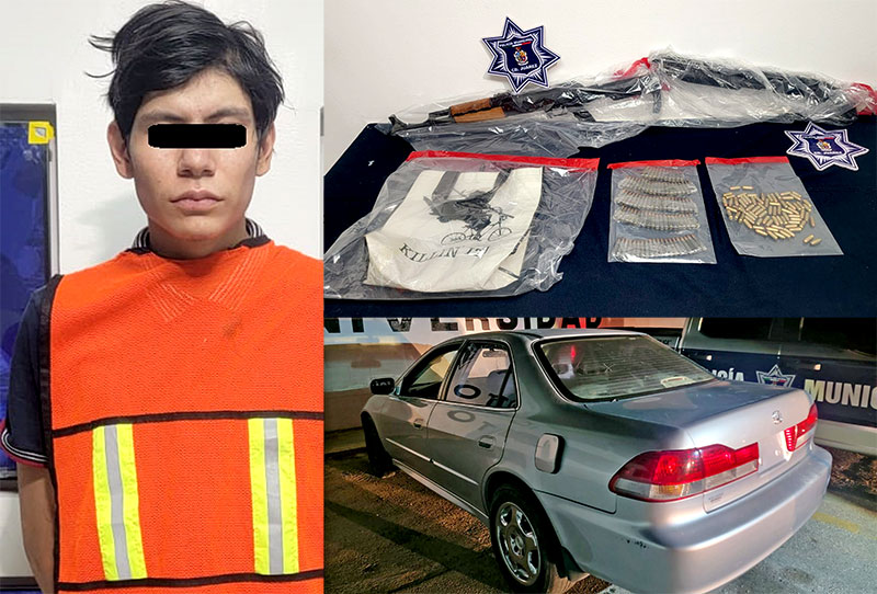 Elementos de la Secretaría de Seguridad Pública Municipal, adscritos a la Estación de Policía del Distrito Universidad, realizaron la detención de Jorge Arturo P. G. y un adolescente por su presunta responsabilidad en la comisión de delitos contra la ley federal de armas de fuego y explosivos.