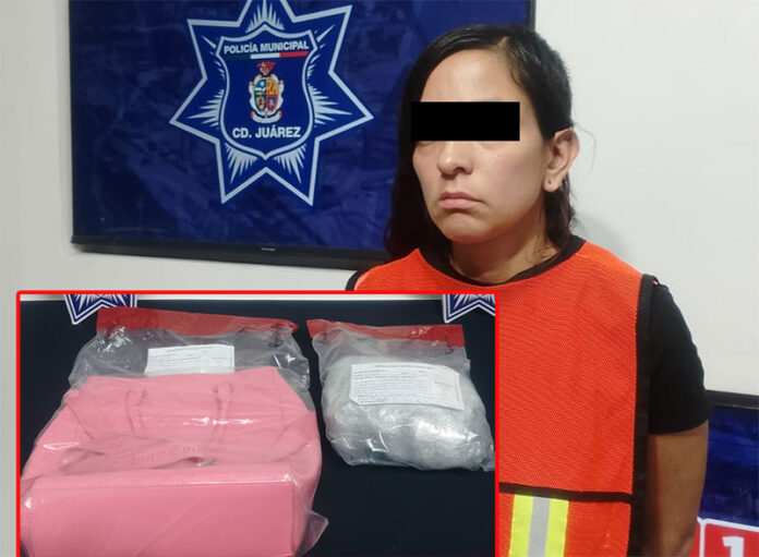 Motivo por el cual fue abordada en el cruce de las calles Azabache y Lucero, en el citado fraccionamiento y al realizarle una inspección preventiva, se le localizó entre sus pertenencias una bolsa de plástico la cual contenía marihuana, con un peso aproximado de casi una libra, procediendo con su detención.