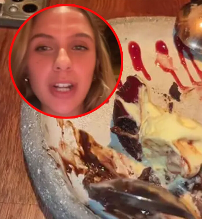 La usuaria, identificada como Laura Zurrón, compartió el momento a través de la cuenta @117films, mostrando su sorpresa al descubrir el objeto oculto entre la capa de salsa de chocolate del postre. “Me acabo de encontrar un anillo de matrimonio en mi postre del restaurante”, dice Laura, visiblemente confundida, al inicio del video.