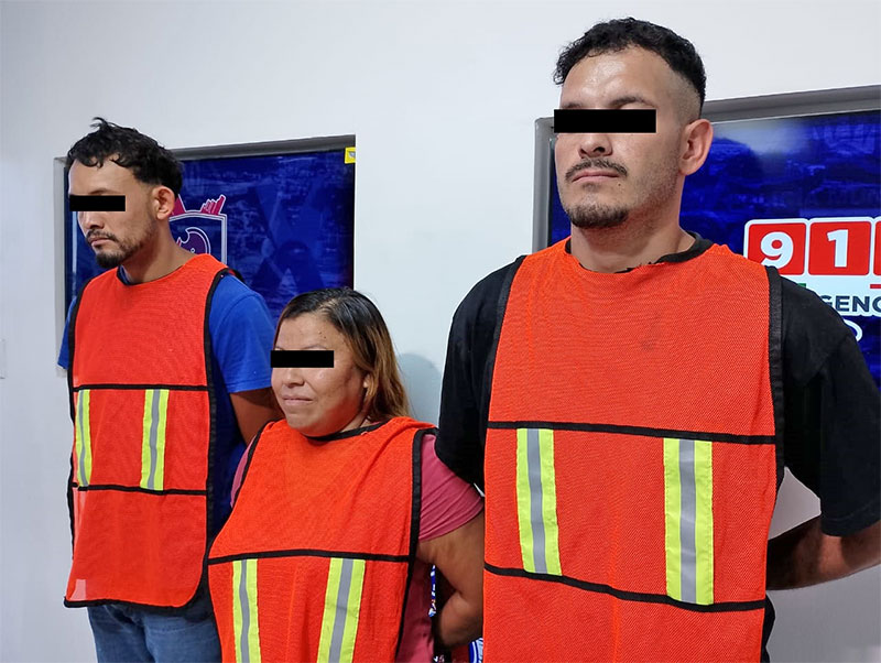 Previa lectura de derechos, Aracely R. G. de 35 años, Abundio Jesús M. S. de 27 años y Luis Javier A. C. de 30 años, fueron consignados ante la autoridad correspondiente por su presunta responsabilidad en la comisión de los delitos antes mencionados.
