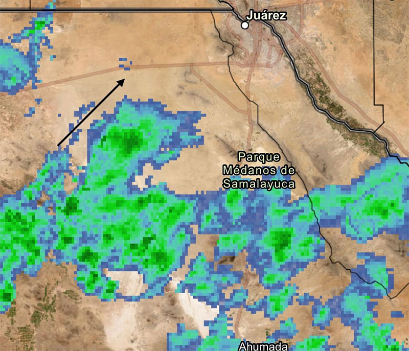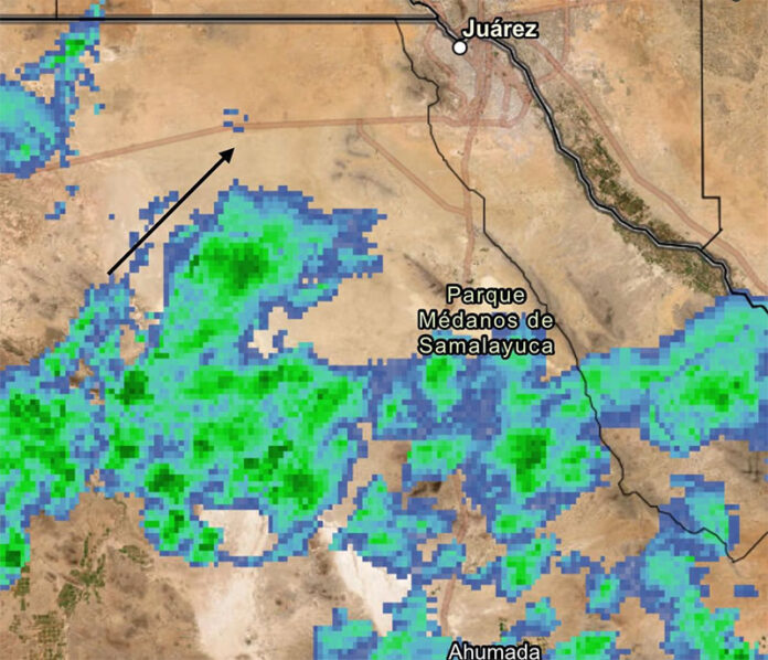 De acuerdo con el aviso meteorológico informativo actualizado a las 8:12 de la mañana de este lunes 13 de octubre, se detecta nubosidad de baja a moderada densidad ingresando a la zona de Samalayuca, con desplazamiento de suroeste a noreste rumbo a territorio estadounidense. Este sistema podría transitar en las próximas horas sobre la ciudad.