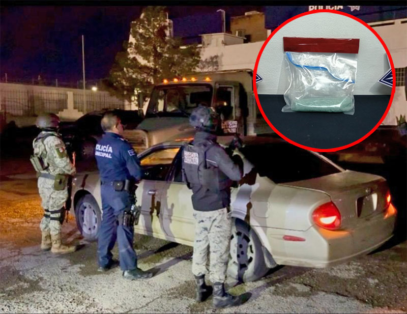 Agentes adscritos a las Bases de Operaciones Interinstitucionales (BOI), que participan en el plan estratégico de seguridad en la ciudad, aseguraron un vehículo en cuyo interior se encontraba una bolsa con cristal.