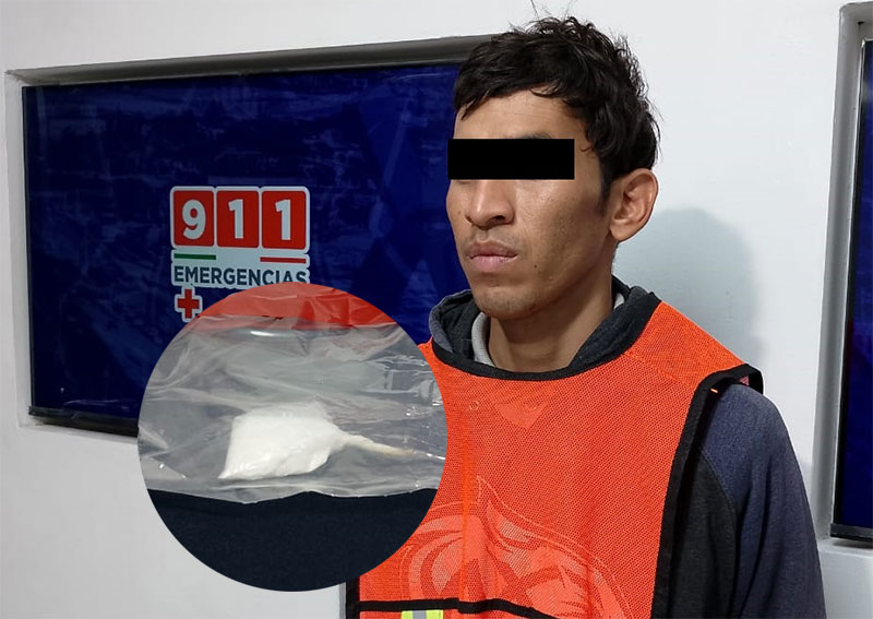 Razón por la cual los agentes lo abordaron por protocolos de seguridad y al realizarle una inspección preventiva, se le localizó entre sus pertenencias una bolsa de plástico que contenía aproximadamente 12 gramos de cristal, motivo por el cual fue puesto bajo detención.