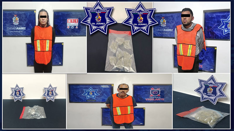 Elementos de la Secretaría de Seguridad Pública Municipal arrestaron a tres personas por su presunta responsabilidad en la comisión de delitos contra la salud en su modalidad de narcomenudeo.