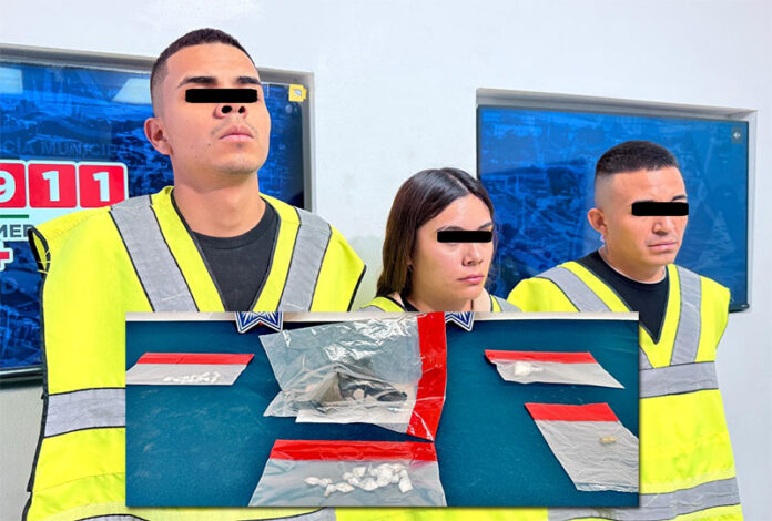 Elementos de la Secretaría de Seguridad Pública Municipal, adscritos a la Estación de Policía del Distrito Universidad, llevaron a cabo la detención de dos hombres y una mujer identificados como Carlos Alfredo M. G., Juan Josué M. N. y Nubia Adriana G. H., por su presunta responsabilidad en la comisión de delitos contra la salud y violación a la ley federal de armas de fuego y explosivos, así como por su posible relación en un hecho de homicidio.