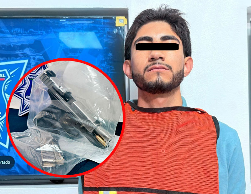 Con esta información, los agentes implementaron un operativo de búsqueda, localizando metros adelante a un sujeto cuyas características coincidían con las descritas y al realizarle una inspección preventiva, se le aseguró un arma de fuego calibre 9 milímetros, con un cargador abastecido con dos cartuchos útiles, la cual presuntamente fue utilizada en el hecho.