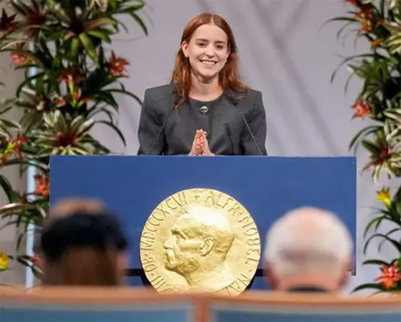 En una llamada con el presidente del Comité Noruego del Nobel, Jørgen Watne Frydnes, divulgada por la organización justo antes de la gala, María Corina Machado se dijo “muy triste” y afirmó que “sentía mucho” no llegar a tiempo para la ceremonia.