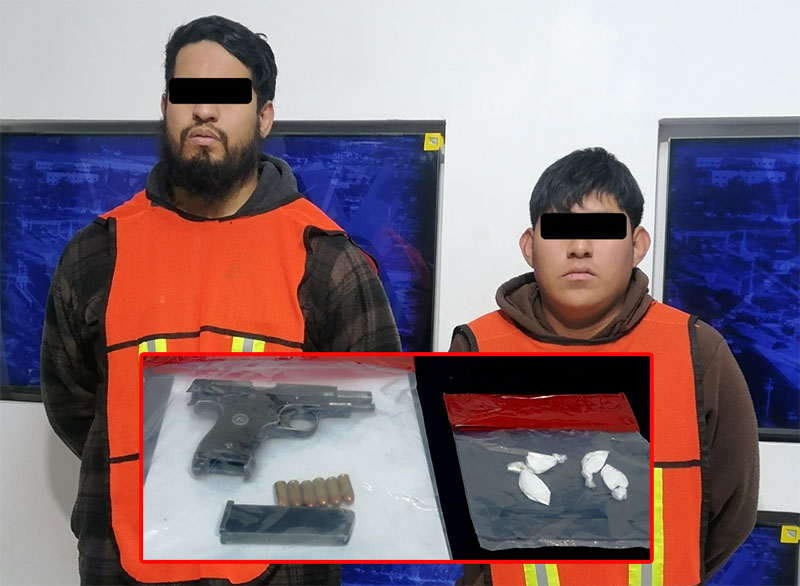 A 10 de diciembre de 2025.- Agentes de la Secretaría de Seguridad Pública Municipal arrestaron a Francisco Roberto N. G. y Oscar F. M., por su presunta responsabilidad en la comisión de delitos contra la salud y contra la ley federal de armas de fuego y explosivos.