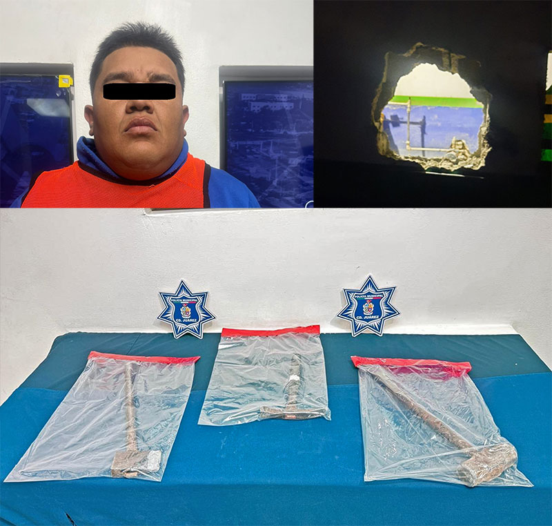 Al arribar al lugar, los oficiales sorprendieron a un sujeto que portaba un marro, así como un boquete realizado en una de las paredes del establecimiento, motivo por el cual fue abordado conforme a los protocolos de seguridad.