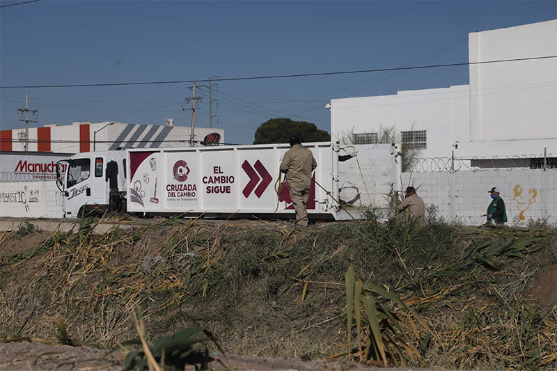 La Dirección General de Servicios Públicos Municipales, a través de la Dirección de Limpia, trabaja desde ayer y durante esta semana en la limpieza del cauce del Dren 2A, en el tramo que colinda con el Infonavit Casas Grandes.