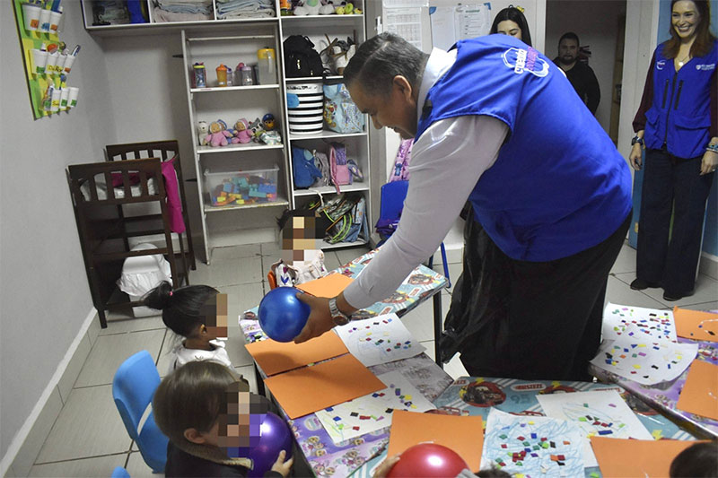 El representante de la oficina de la Gubernatura en Juárez, Carlos Ortiz, recorrió algunos de los centros para entregar apoyos a las niñas y niños, así como al personal, además de verificar que cuenten con la licencia de funcionamiento correspondiente.