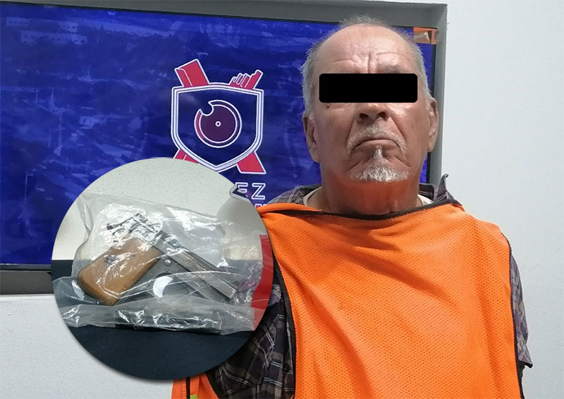 Motivo por el cual fue abordado para hacerle saber la denuncia existente en su contra y al realizarle una revisión por protocolos de seguridad, se le aseguró un arma de fuego calibre 25 con un cargador abastecido con cuatro cartuchos útiles, y al no contar con permiso para portar el arma, procedieron con su detención.