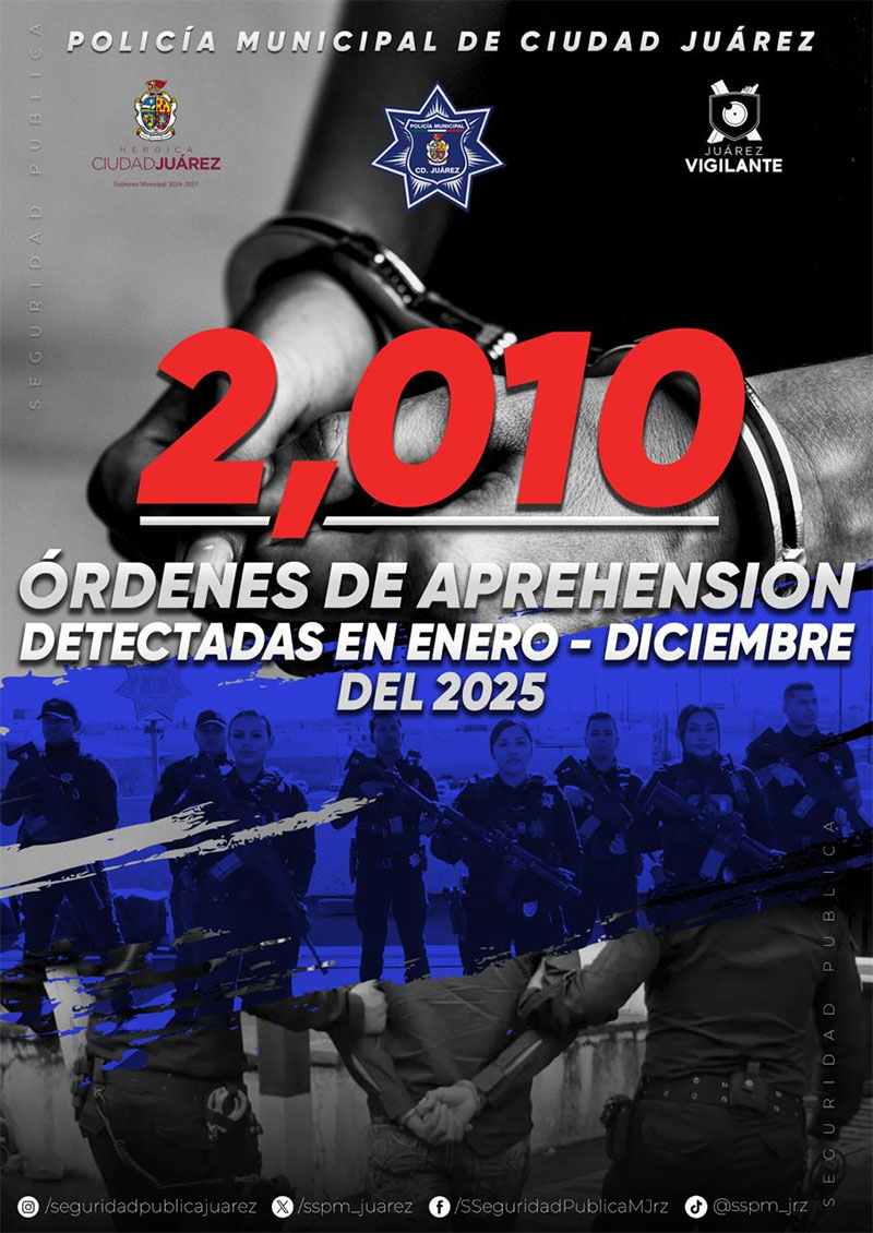 La Secretaría de Seguridad Pública Municipal informa sobre los resultados relevantes durante el año 2025, obtenidos en cuanto a detección de mandamientos judiciales vigentes a través de las acciones y estrategias para la prevención del delito.