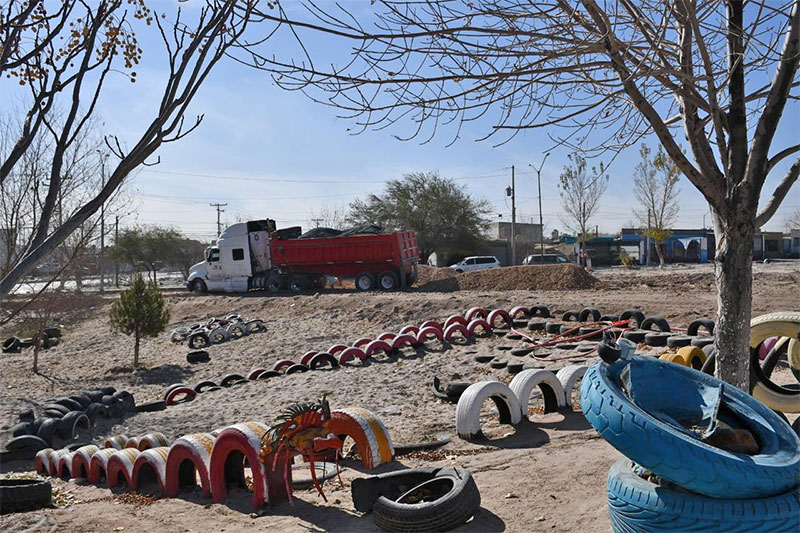 Daniel González García, titular de la dependencia, detalló que las actividades iniciaron con las demoliciones y el retiro de una cantidad importante de llantas del parque, el cual está ubicado entre las calles Puerto Anzio y Portal del Ebano.