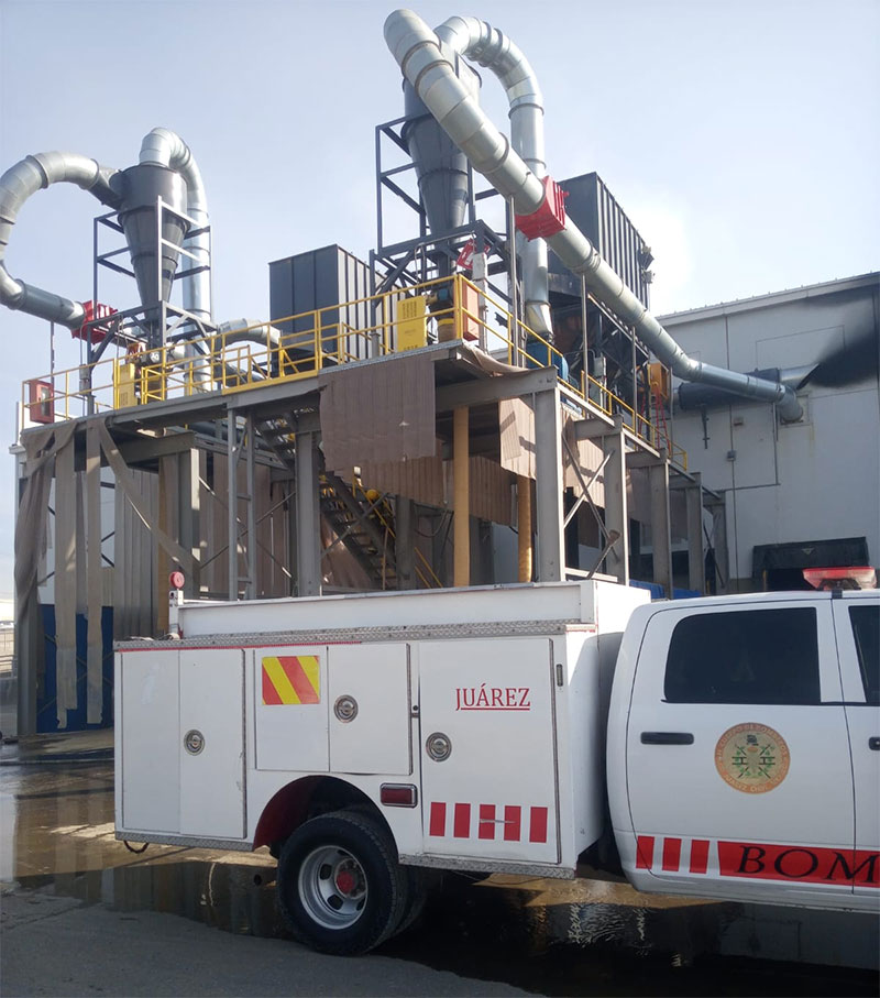 La Dirección General de Protección Civil informó que la mañana de este día, elementos operativos de la dependencia atendieron un incendio registrado en tolvas con aserrín ubicadas en el patio de una empresa maquiladora de la colonia Lote Bravo.