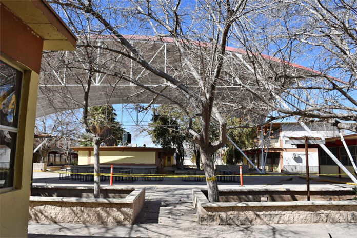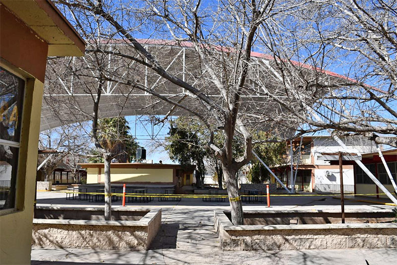 La Dirección General de Obras Públicas del Municipio informó que la construcción del domo en la Escuela Secundaria Federal 6, ubicada en la calle Benemérito de las Américas, en la colonia Infonavit Casas Grandes, lleva un avance del 90 por ciento.