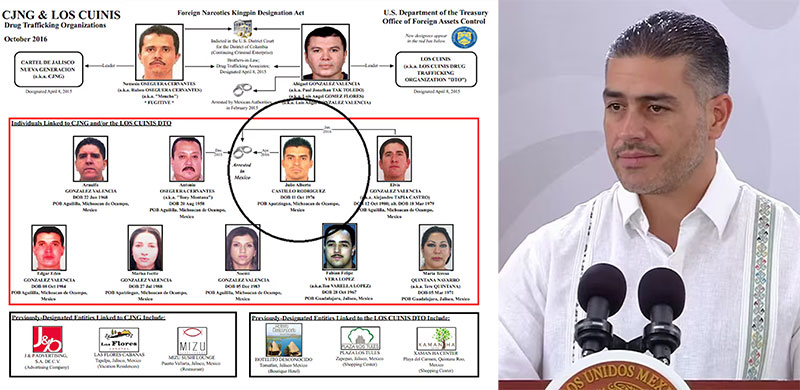 Juan Carlos Valencia González, apodado “El 03″: el nombre que con mayor insistencia aparece en los expedientes judiciales y los reportes de inteligencia es el de Juan Carlos Valencia González, alias “El 03”, “El R3” o “El Plumas”. Hijastro de Oseguera Cervantes e hijo de Rosalinda González Valencia —conocida dentro de la organización como “La Jefa” y figura clave del entramado financiero del clan—, Valencia González ocupa desde hace años el tercer escalón en el organigrama del cártel, una posición que su propio alias numérico delata.