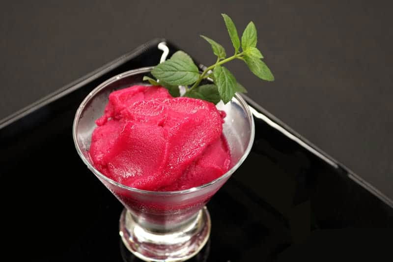 Sirve acompañada de crema fría. Consejo técnico clave: No agregues la pulpa con el jarabe muy caliente para evitar que pierda color y propiedades.