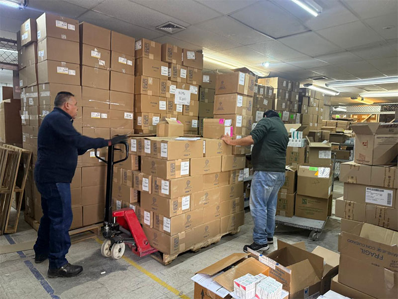 Estos datos se presentaron durante la visita del director general de PCE, Heriberto Miranda Pérez, al almacén central de medicamentos, donde sostuvo una reunión de trabajo con las áreas de abastecimiento, farmacia y distribución para definir la programación de entregas a las delegaciones.