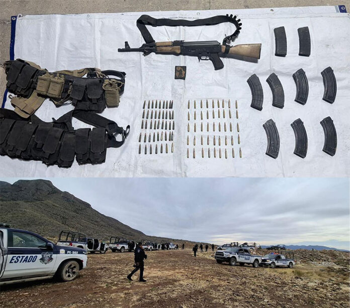 Policías de Despliegue de la Secretaría de Seguridad Pública del Estado, en colaboración con el Ejército Mexicano, llevaron a cabo la localización y posterior inhabilitación de un campamento, presuntamente utilizado por el crimen organizado en las cercanías del poblado de Chorreras, municipio de Aldama, en donde fue asegurada un arma larga de fuego, así como cartuchos y equipo táctico.