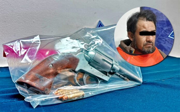 Ante dicha situación, los oficiales procedieron a abordarlo siguiendo los protocolos de seguridad correspondientes y, al realizarle una inspección preventiva, le localizaron un arma de fuego tipo revólver calibre .38 especial, cuyo cilindro se encontraba abastecido con cuatro cartuchos útiles, por lo que procedieron con su detención.