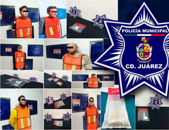 Elementos de la Secretaría de Seguridad Pública Municipal arrestaron a siete personas por su presunta responsabilidad en la comisión de delitos contra la salud en su modalidad de narcomenudeo.